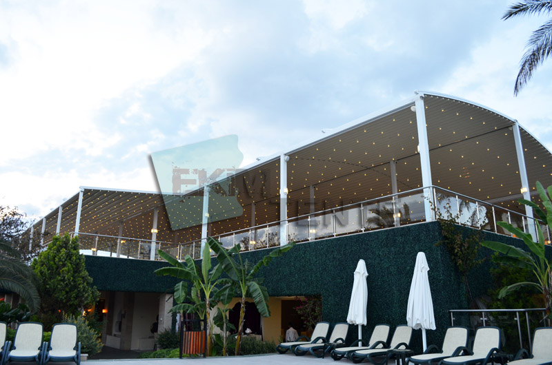 Pergola tente, yapı ruhsatı gerektirmeden tamamı otomatik ve manuel açılır - kapanır, yaz ve kış koşullarında mekanı kullanma imkanı sağlayan ergonomik ve son teknoloji ürünü gölgelendirme ürünüdür. Pergola, dört mevsim ideal çizimler sunan mükemmel bir sistemdir. Pergola Sistemi sizlere doğal ışık ve havalandırma imkânı sağlar. Özel dizaynı, yağmur ve kar sularının içeriye girmesini engeller. Herhangi bir sızdırma yahut havuzlanmaya kesinlikle meydan vermez.