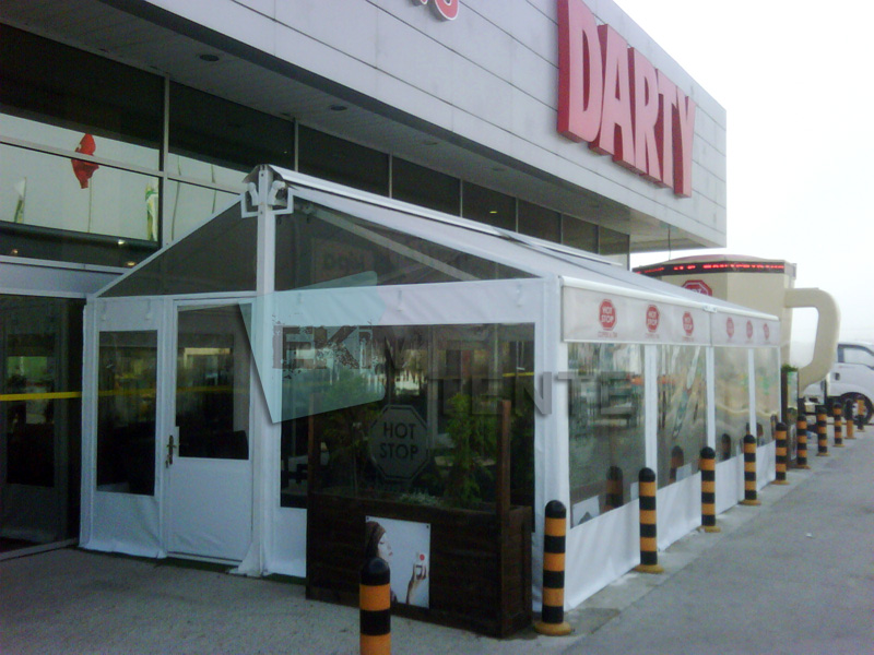 Üst kısımları sabit olarak üretilen bu sistemin kenar kısımları fermuarlı olup istendiğinde kolaylıkla toplanabilmektedir. Kenar kısımları kapattığınızda mekanınızı kışın yağmurdan ve soğuktan koruyabilir, klima ve ısıtıcılarla ortam sıcaklığını istediğiniz gibi ayarlayabilirsiniz.